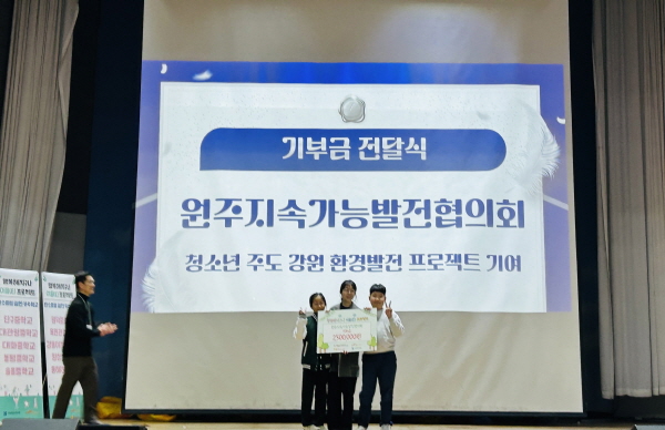건강보험심사평가원은 28일 국립평창청소년수련원에서 열린 「행복해 지구나 이음(E) 프로젝트」 수료식에서 원주지속가능발전협의회에 기부금 250만원을 전달했다.